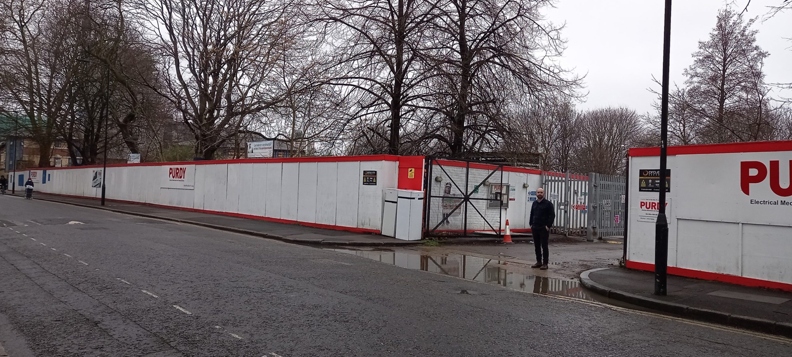 Before and after the new hoarding had been installed. Drag the slider for before and after