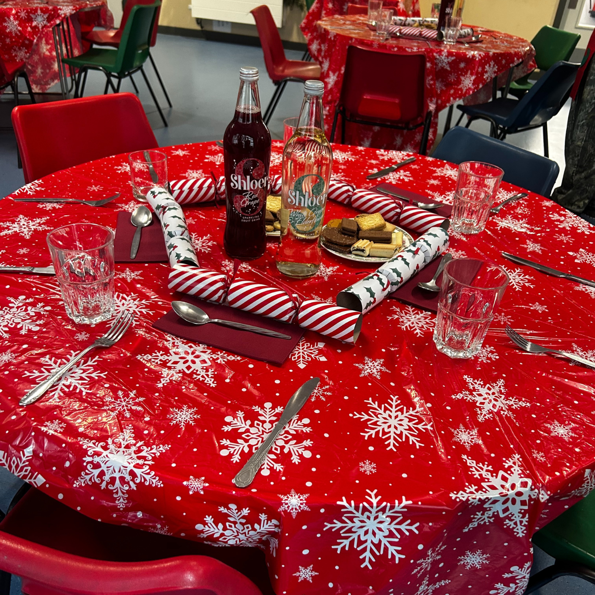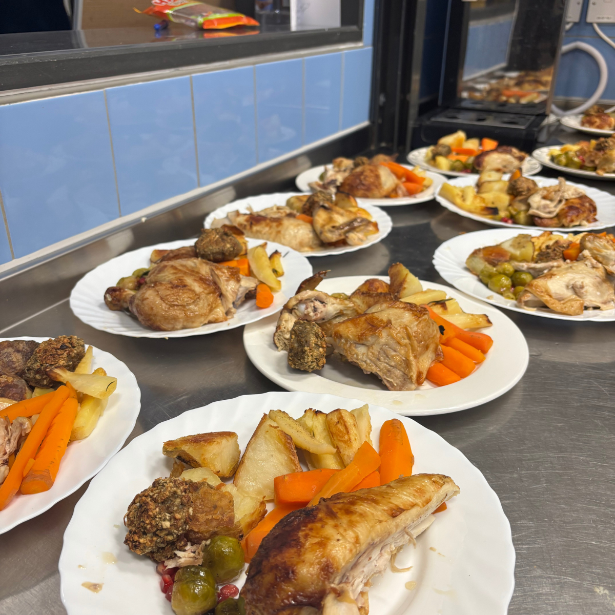 We wanted to help make the event really festive, so we supplied tablecloths, Christmas crackers, and fizzy drinks to their canteens, along with three towers of treats for the raffle. Members of Team Spokemead, Nick Blake and Saffron Wilmot, volunteered their time to help prepare the meals. It was a privilege to collaborate with Be Enriched and play a small part in their invaluable work during the festive season.
